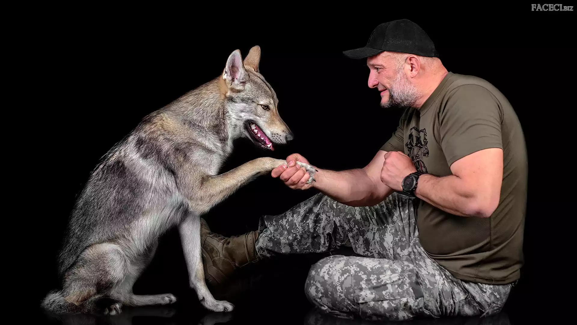 Łapa, Broda, Mężczyzna, Pies, Wilczak czechosłowacki, Czapka, Zegarek - faceci.biz
